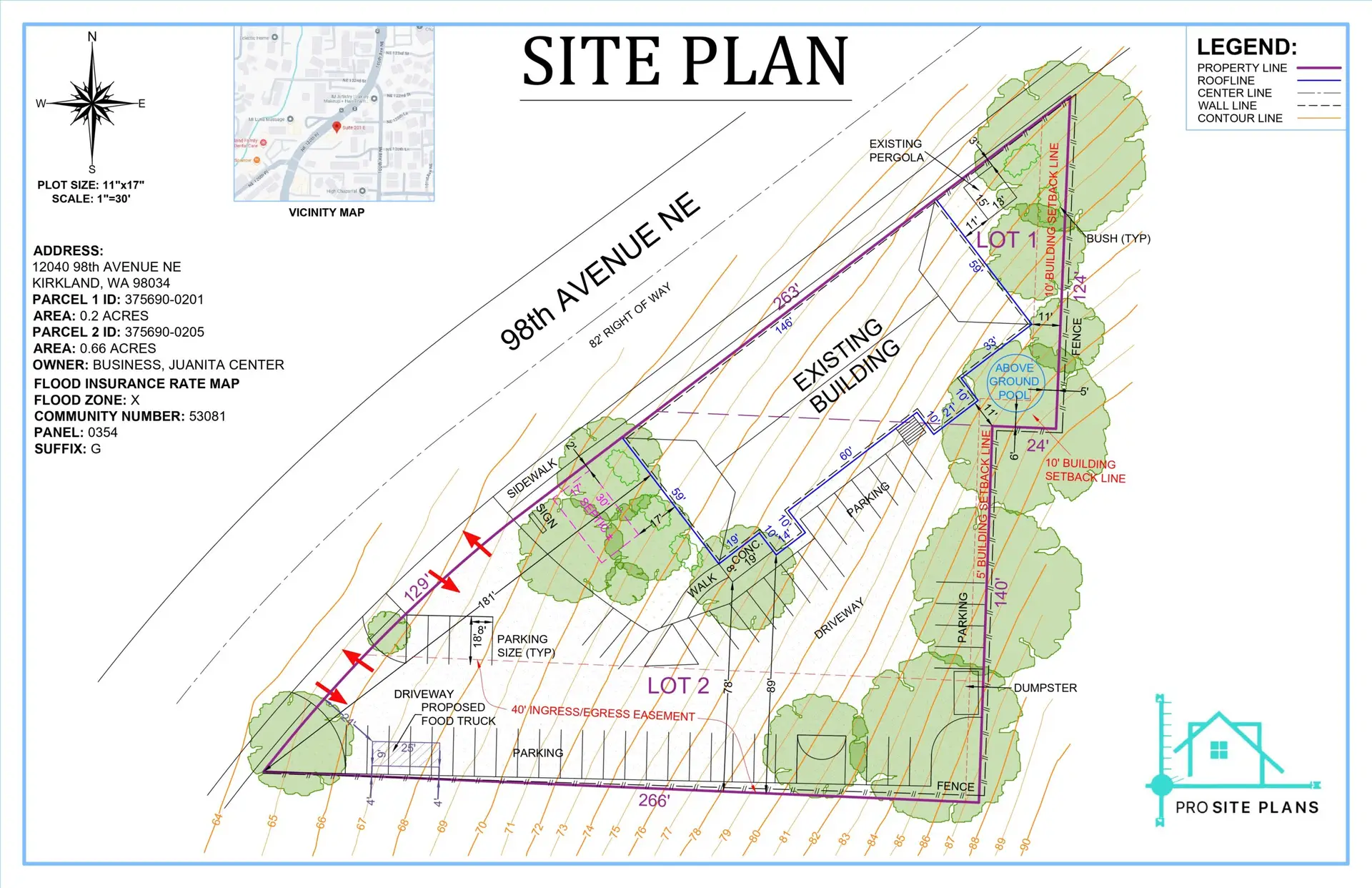 It includes everything from our Basic, Advanced, and Professional Site Plans, plus additional high-level features such as topography, vicinity mapping, legal setbacks, critical areas, and custom formats required by strict planning departments.